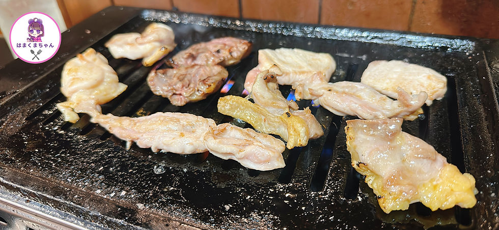 焼き鳥屋さんなのに串に刺さっていなくて、焼肉みたいに目の前のコンロでじゅうじゅう焼くんです(● ˃̶͈̀ロ˂̶͈́)੭ꠥ⁾⁾